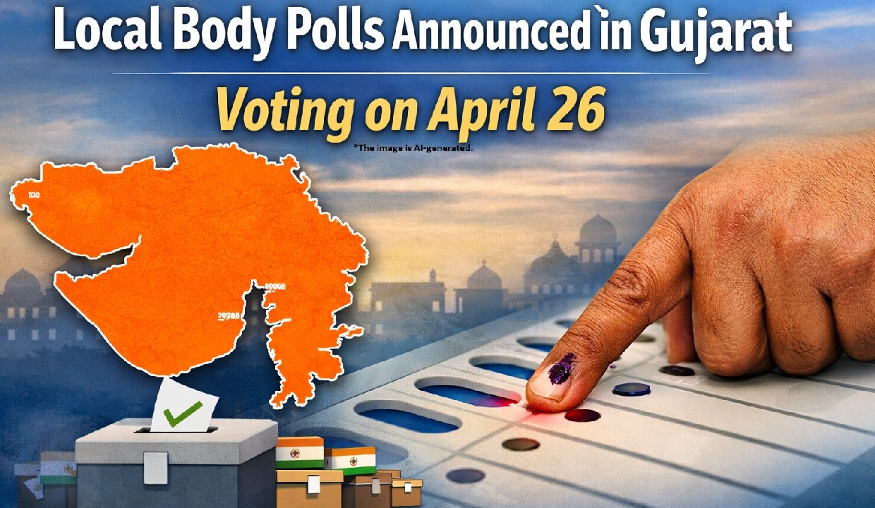 The State Election Commissioner of Gujarat, S Murali Krishna, has announced the schedule for local self-Government elections in the State. Voting will be held on April 26, while counting of votes will take place on April 28. The Model Code of Conduct has come into force with immediate effect. Elections will be conducted for 34 District Panchayats, 260 Taluka Panchayats, 95 Municipalities, and 15 Municipal Corporations. The official notification will be issued on April 9, 2026. The last date for filing nominations is April 11, while scrutiny of nomination papers will be held on April 13. Candidates may withdraw their nominations until April 15. Polling will take place on Sunday, April 26, from 7 am to 6 pm. Approximately 4.18 crore voters are expected to exercise their franchise, with around 9,992 candidates contesting across the State.