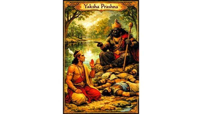 He offered to revive only one brother. Yudhishthira chose Nakula, his stepbrother from Madri, so that both Kunti and Madri could have a living son for the sake of justice. This selflessness moved Yama to revive all. The episode underscores dharma’s essence. Ethical conduct fosters societal harmony; character drives excellence, and non-violence ensures peace. These ancient truths mirror modern fundamental duties.