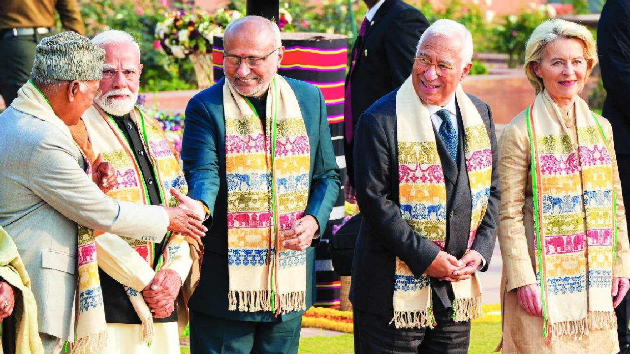“A successful India makes the world more stable, prosperous and secure — and we all benefit,” von der Leyen said who alongwith European Council President Antonio Costa are likely to finalise a strategic security and defence partnership and unveil a framework to facilitate the mobility of Indian professionals to Europe. The meeting is expected to articulate a shared roadmap to navigate shifting global geopolitics, particularly amid policy uncertainties emerging from Washington on trade and security.